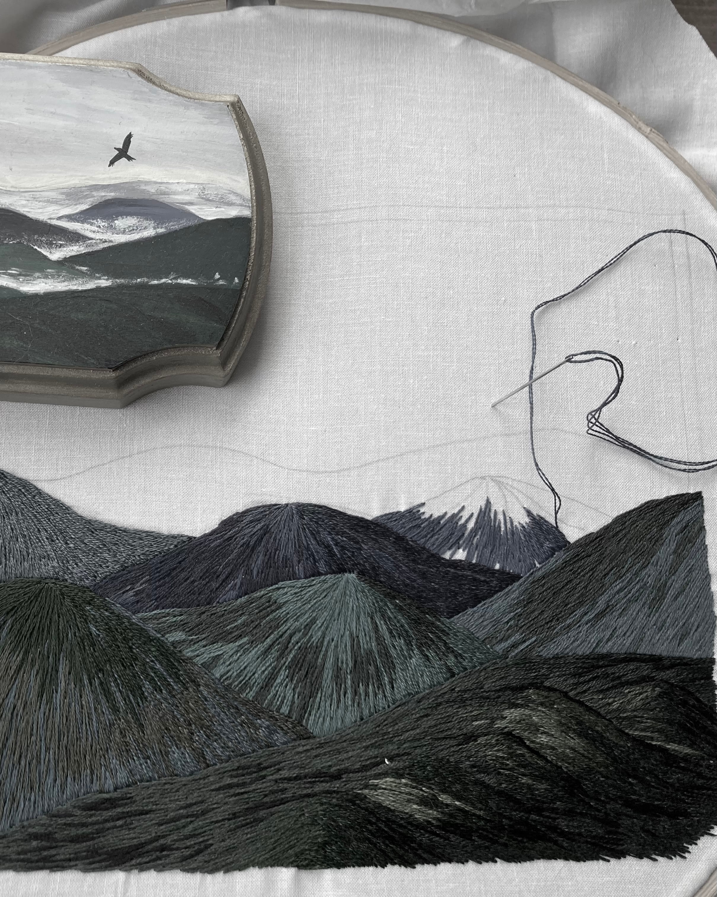 アクリル絵を原画にした、刺繍絵。 風の通り道のように、束の間、心なぐ時間。 自作のアクリル絵を基に、刺繍絵を一点ずつ手作りしています。 「なぜ作ったのか」—— 涙がにじみそうなこの本質的な問いには、ただ真っ直ぐにあなたの目を見つめ返したい。 強くあろうとする心に、小さな灯りのともる作品になりますように。